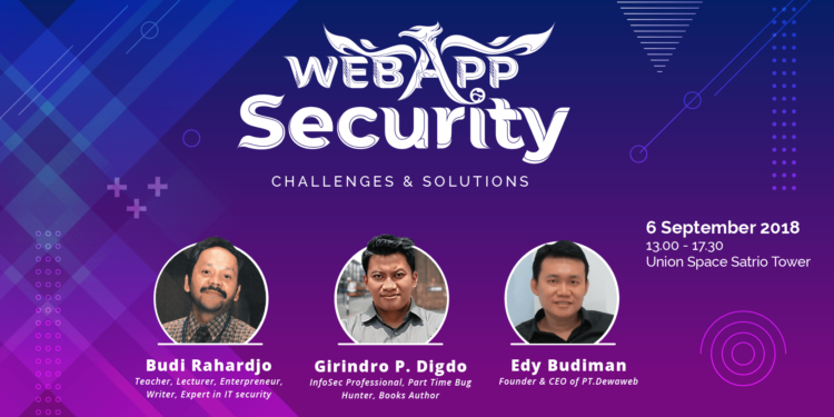 Pada tanggal 6 September 2018 nanti, Dewatalks yang diusung Dewaweb dengan tajuk “Web App Security: Challenges and Solutions” di Union Space Satrio Tower, Jakarta. Tujuan dari event Dewatalks 2018 kali ini adalah untuk memberikan awareness dan pengetahuan praktis untuk para pengembang aplikasi web, sysadmin, dan CTO agar dapat mencegah hal-hal yang tidak diinginkan seperti peretasan, pencurian data, downtime operasional, informasi yang menjadi tidak kredibel, reputasi perusahaan yang menjadi hancur, dan hal-hal lain yang dikarenakan oleh aplikasi web yang tidak aman.