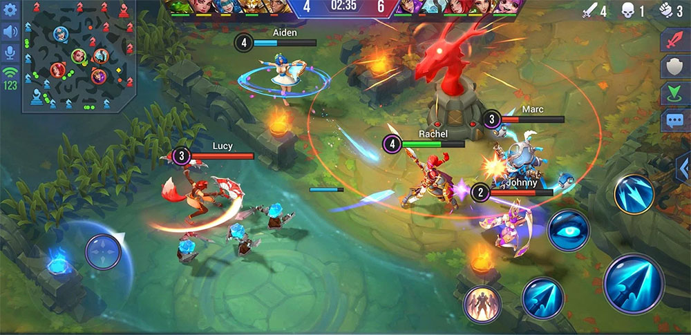 Selain berpetualang, Gameloft juga menambahkan elemen MOBA yang disebut ‘Battlefield‘. Di mana Anda bisa melawan musuh dalam pertarungan 5V5 secara real-time. Kontrol yang disediakan pun terasa familier, dengan sistem analog virtual dan tiga skill.